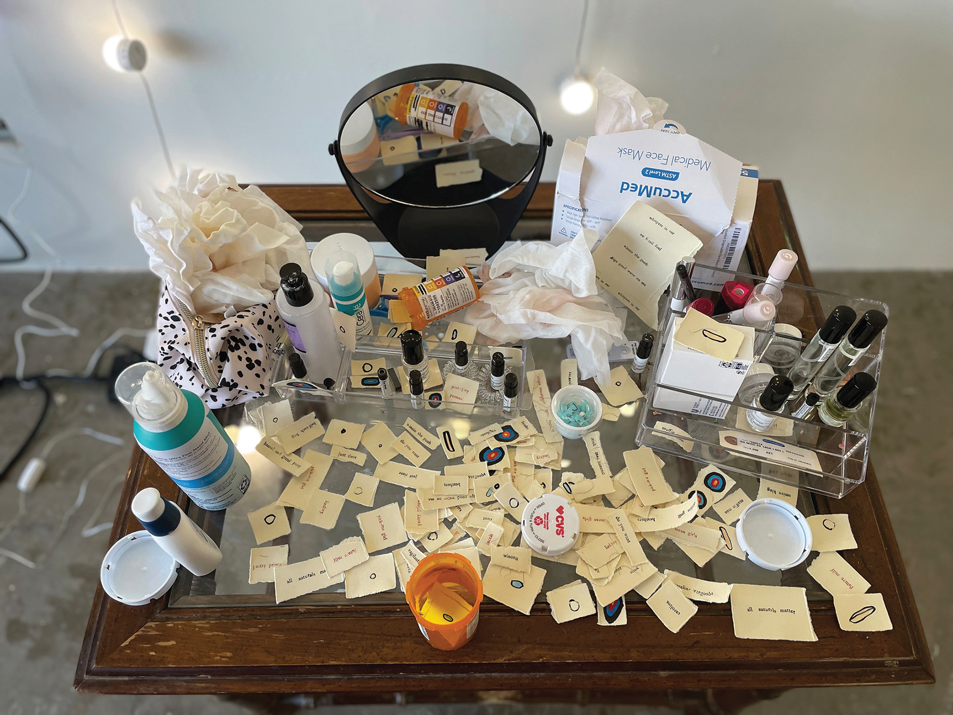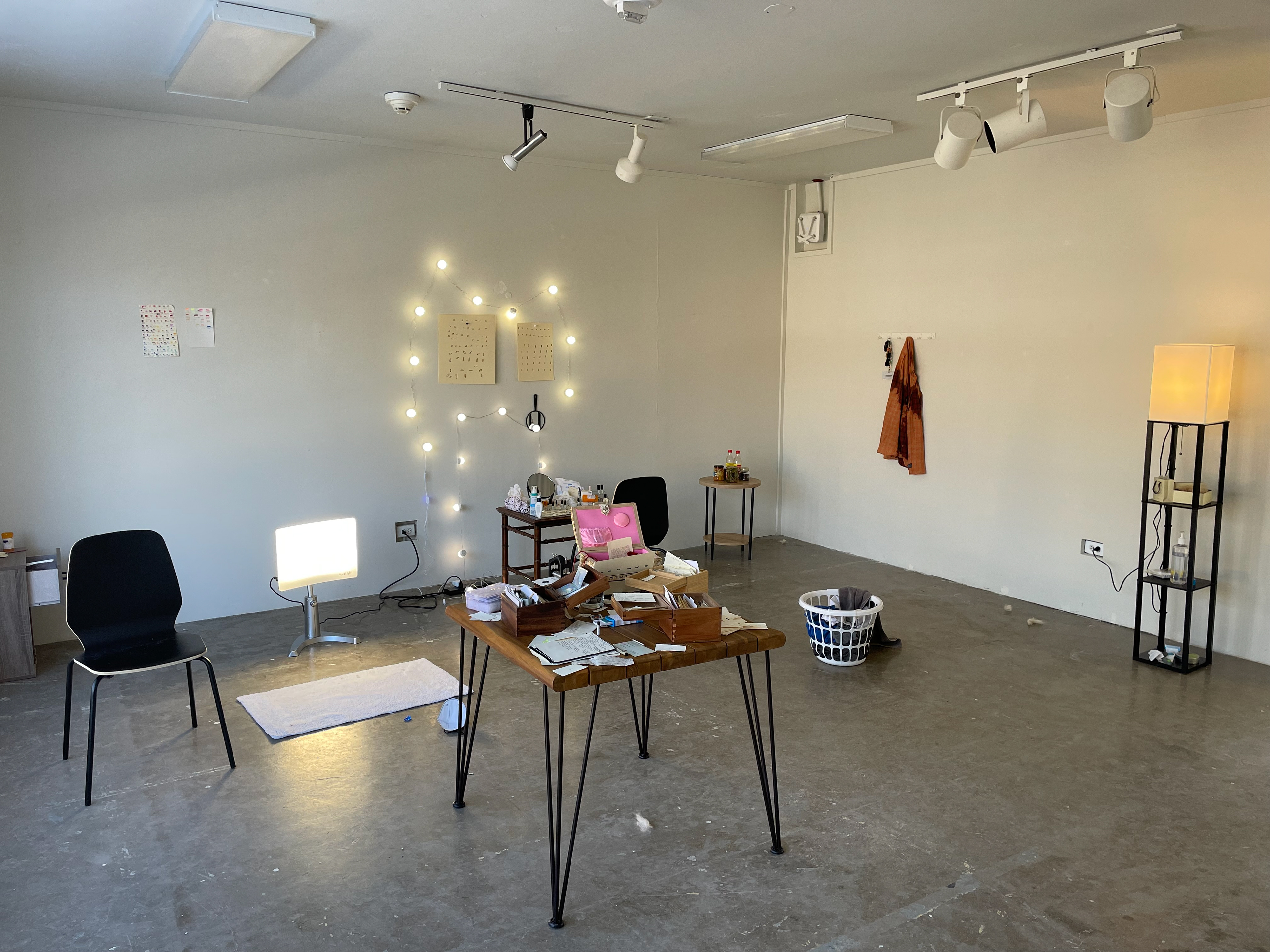 installation of furniture, objects, and printed stand-ins for objects