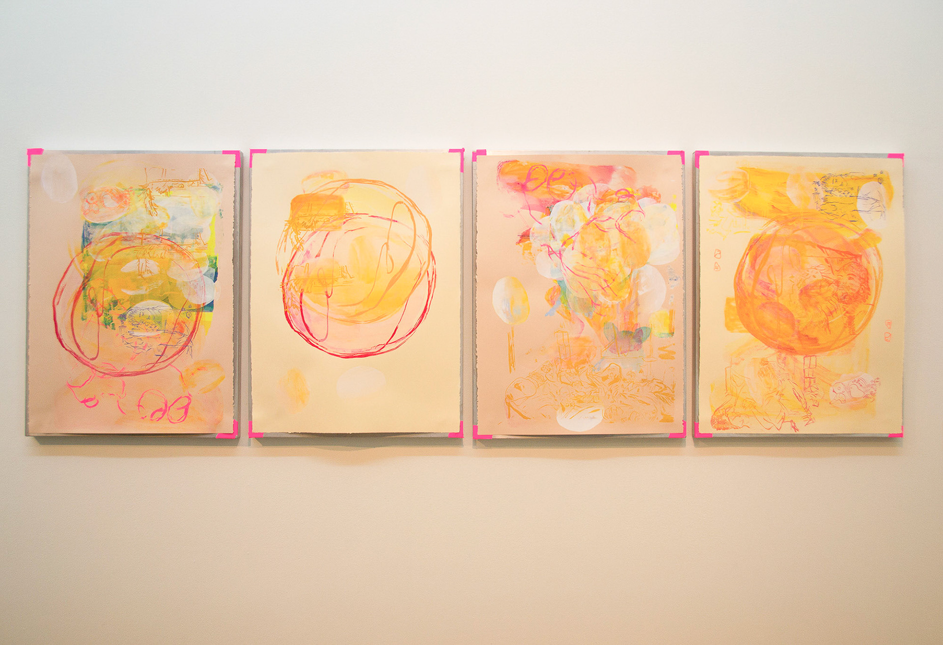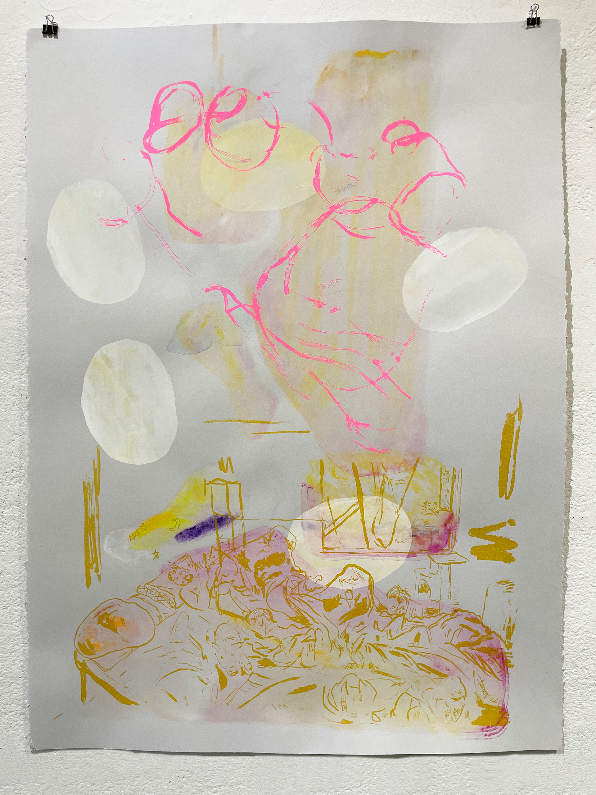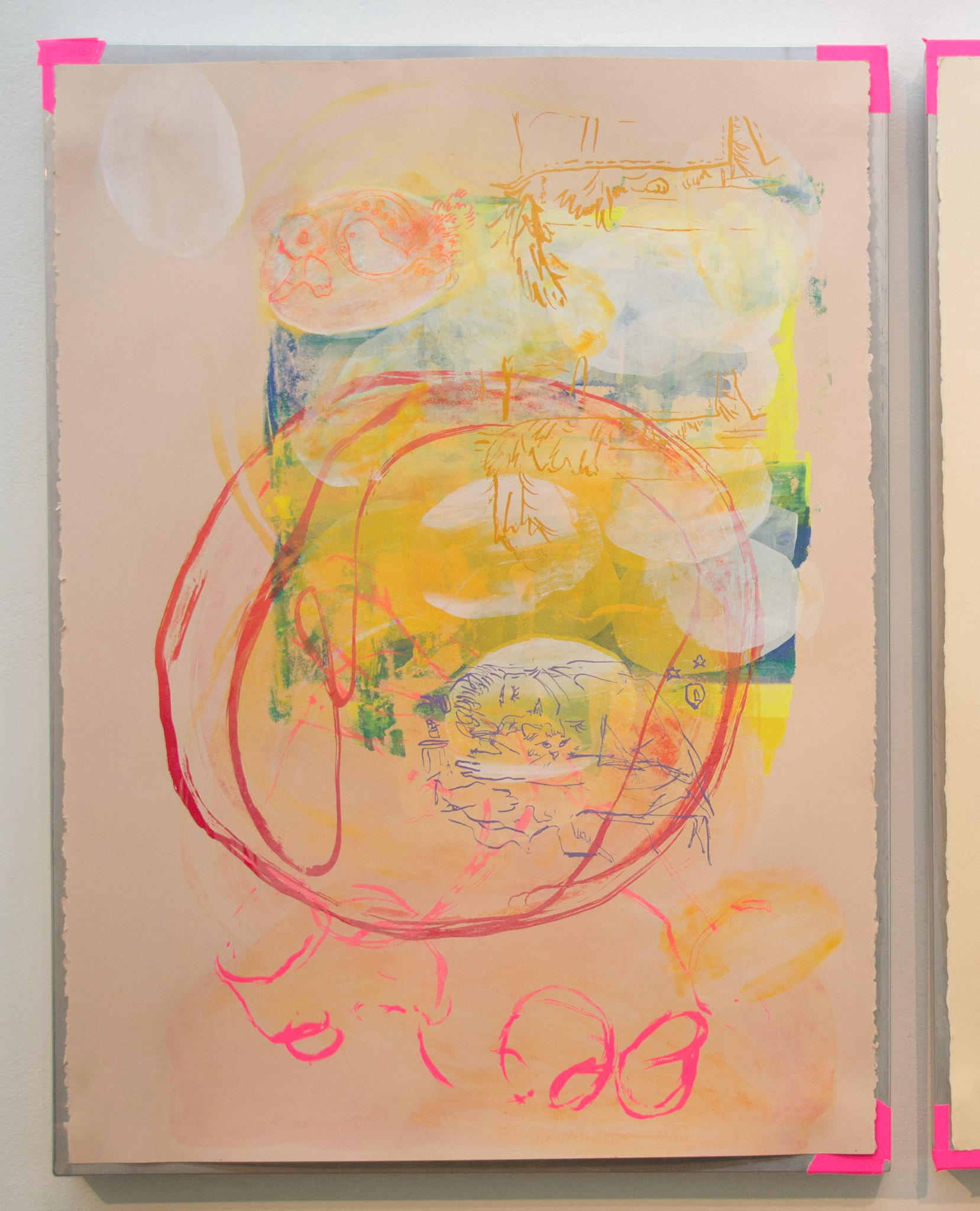 silkscreen monoprints from 2023 series contemplating shared domestic iconography, routines, and inside jokes