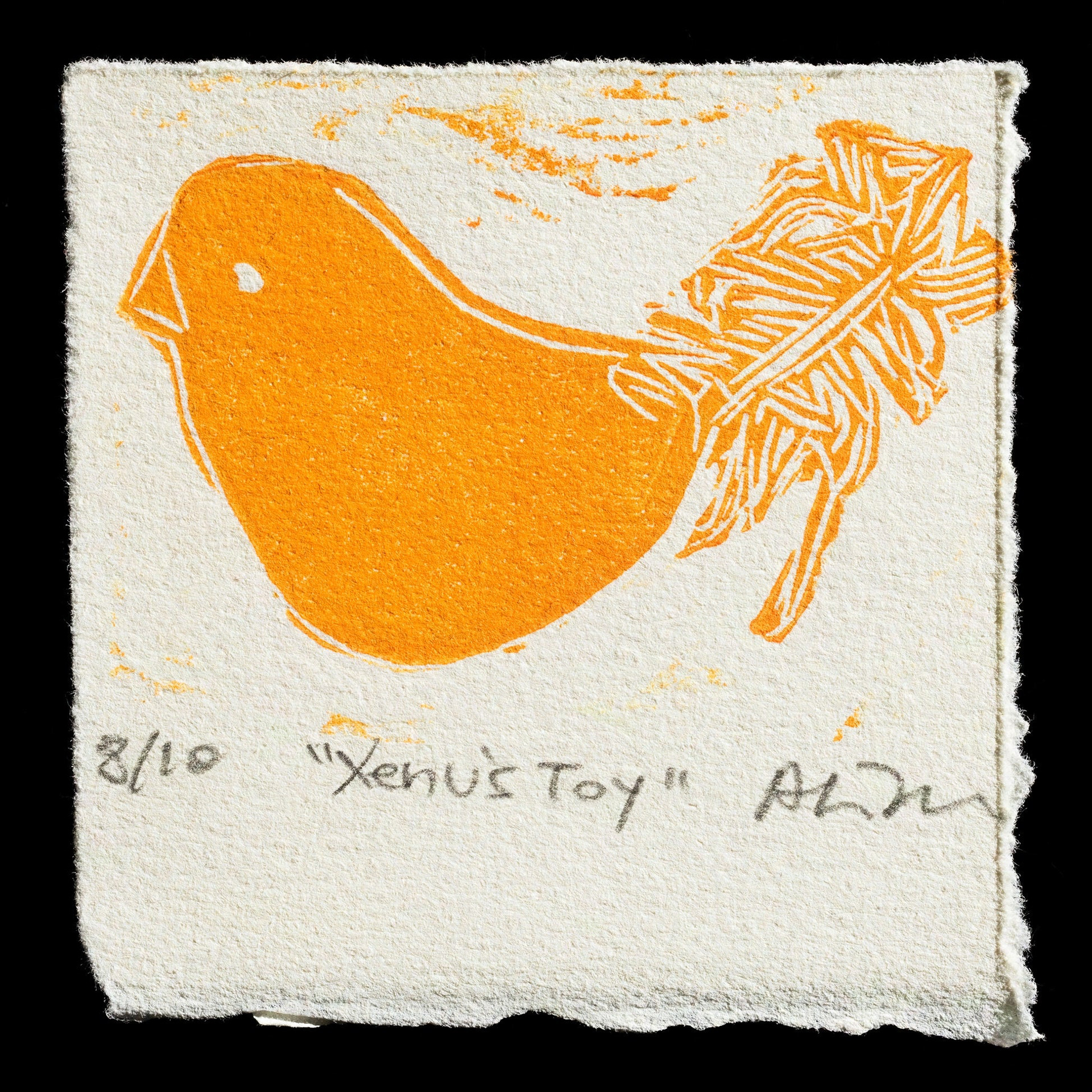 Xenu's Toy, 2022, linocut on paper. Open Print Exchange. inspired by my cat's favorite toy. image courtesy of Open Print Exchange/Open Press Project