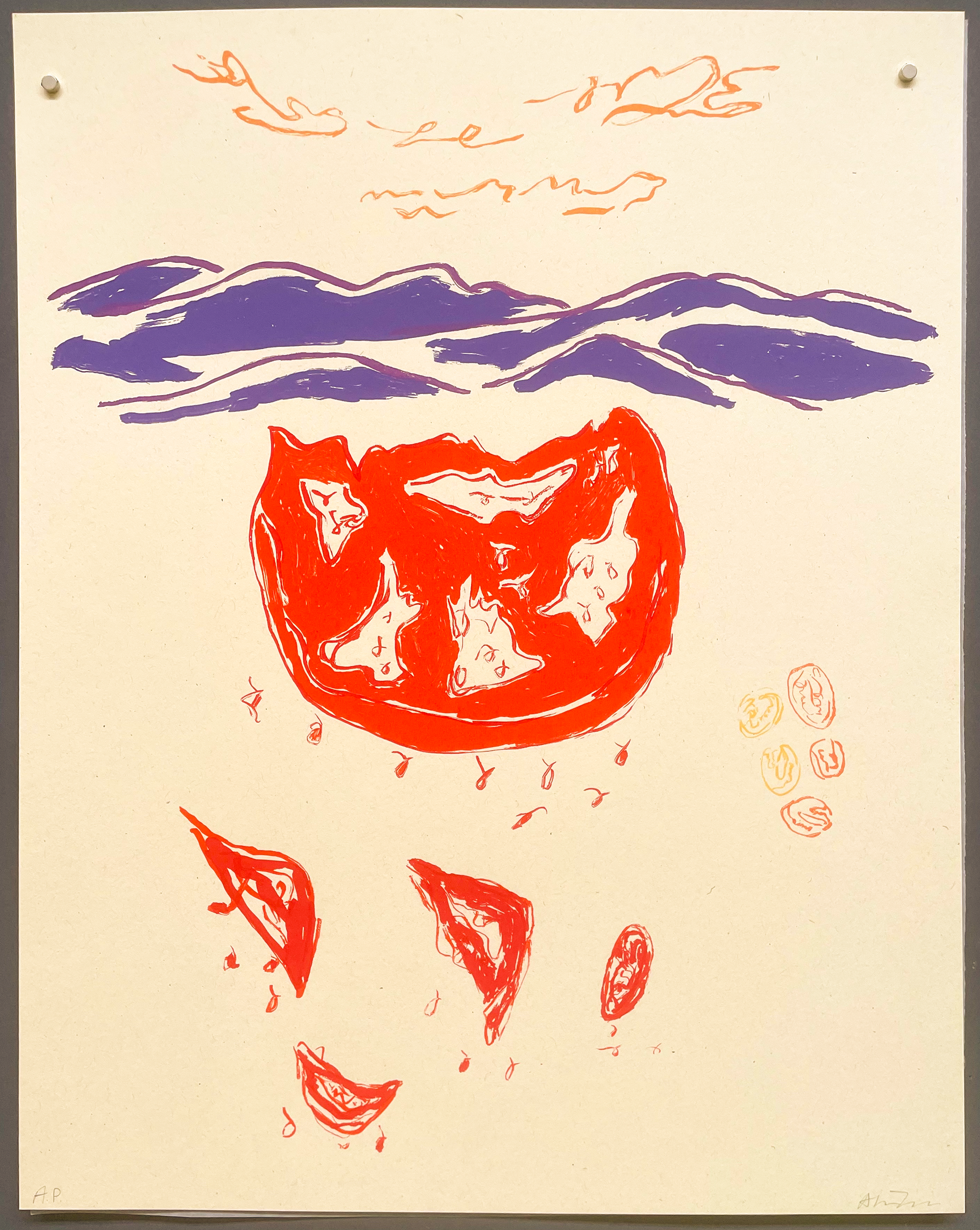 Fresh & Preserved / Jefferson Overlook, 2024, screenprint on paper. Part of Old Wives Tale Print Exchange through Southern Graphics Council International
