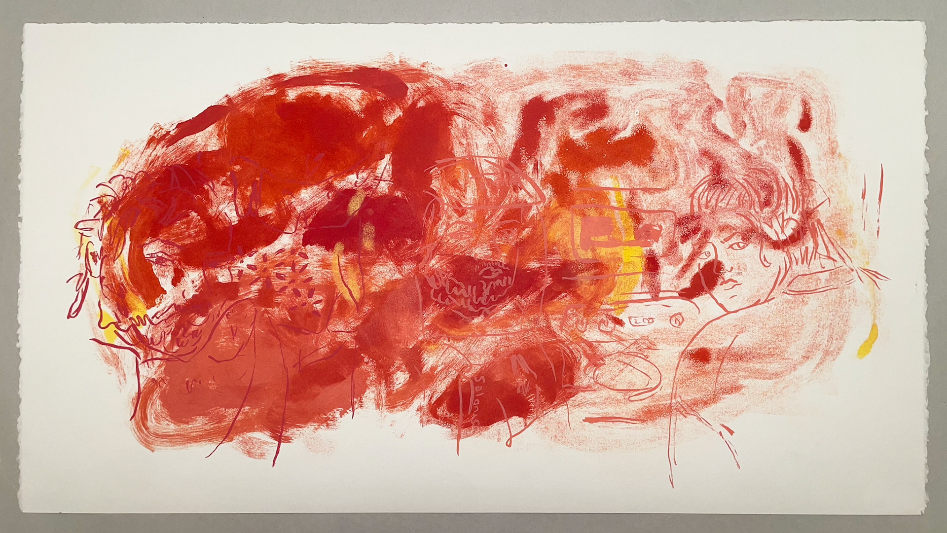 Cloud butt/burning hand, monotype, 2024, 15 x 22 inches