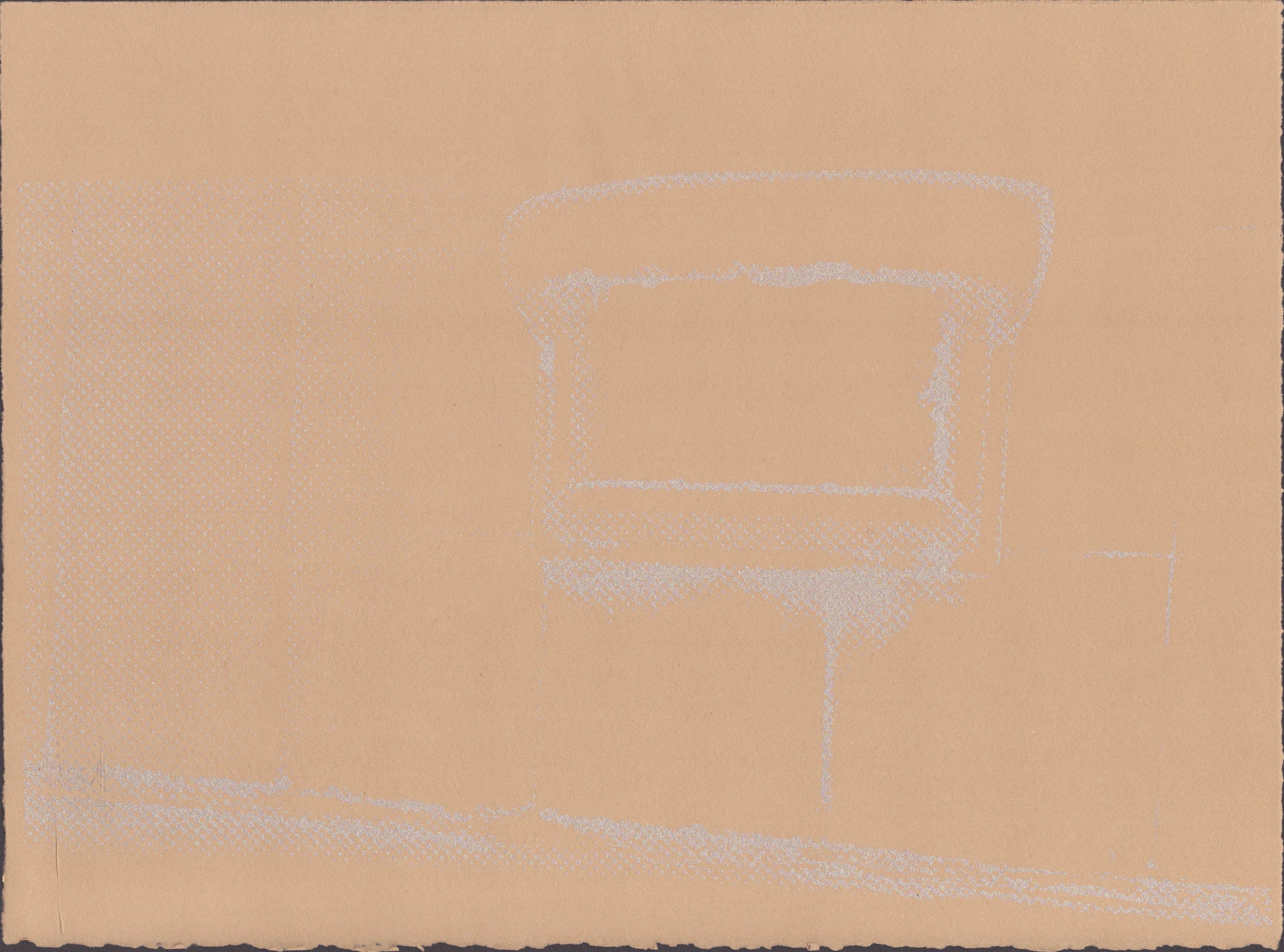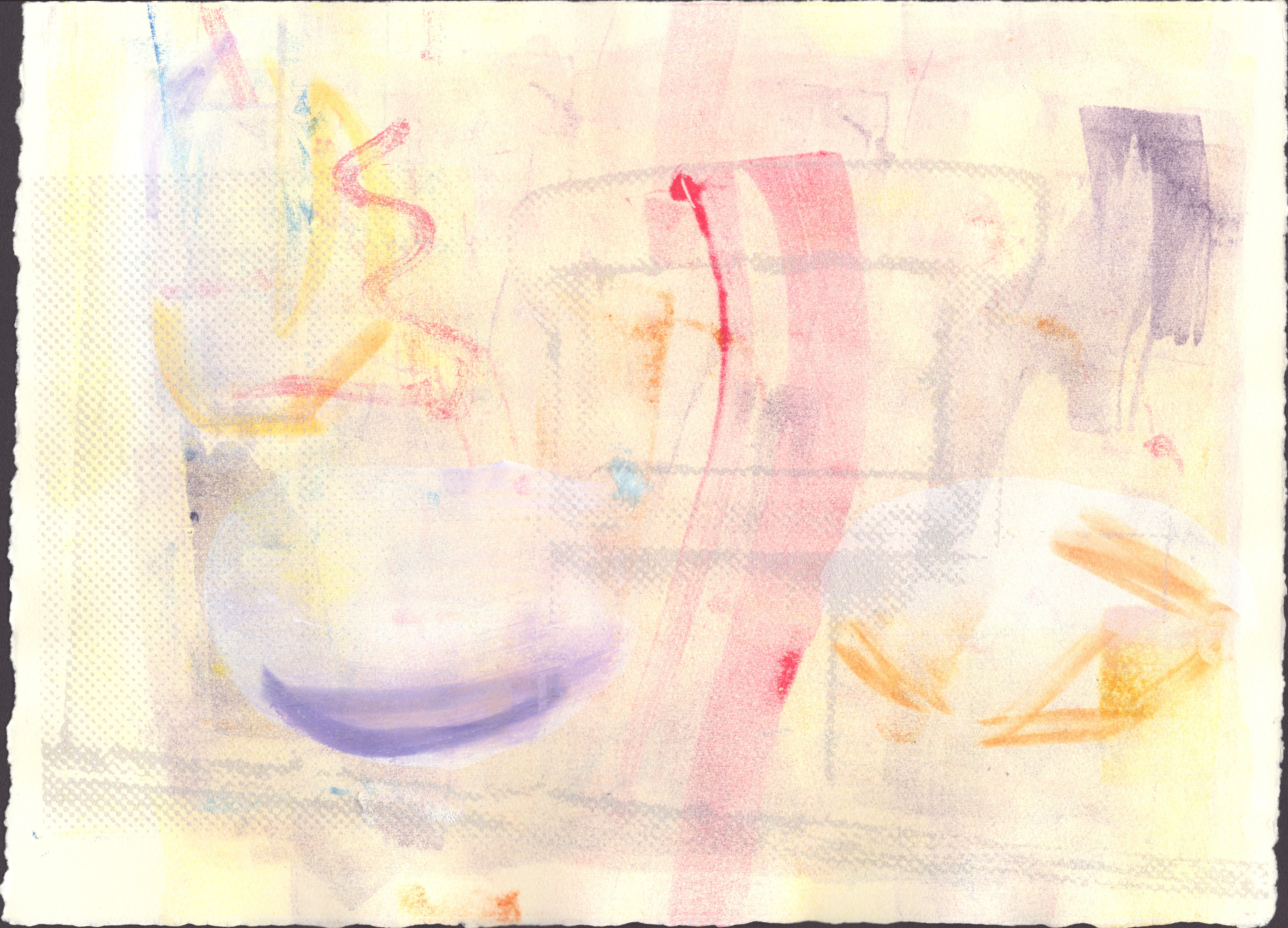 Moldy bathroom soap dish, 2025. monotype with silkscreen monoprint.